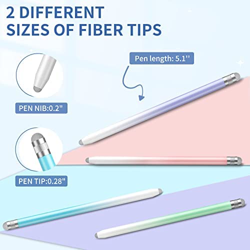 Stylus Pens for Touch Screens, 4PCS Stylus Pen for iPad with Precision Double Fiber Tips, Compatible with Apple iPad/iPhone/Android/Tablets and Other Capacitive Touch Screen (Pink/Blue/Purple/Green)